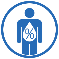 Total Body Water is the total amount of fluid in the body expressed as a percentage of total weight. Water is an essential part of staying healthy. Over half the body consists of water. It regulates body temperature and helps eliminate waste. You lose water continuously through urination, sweat, and breathing, so it’s important to keep replacing it. The amount of fluid needed every day varies from person to person, and is affected by climatic conditions, how much physical activity you undertake, your diet, and much more. Being well hydrated helps concentration levels, sports performance and general wellbeing. Experts recommend that you should drink at least two liters of fluid each day, preferably water or other low calorie drinks. If you are training, it’s important to increase your fluid intake to ensure peak performance at all times.
