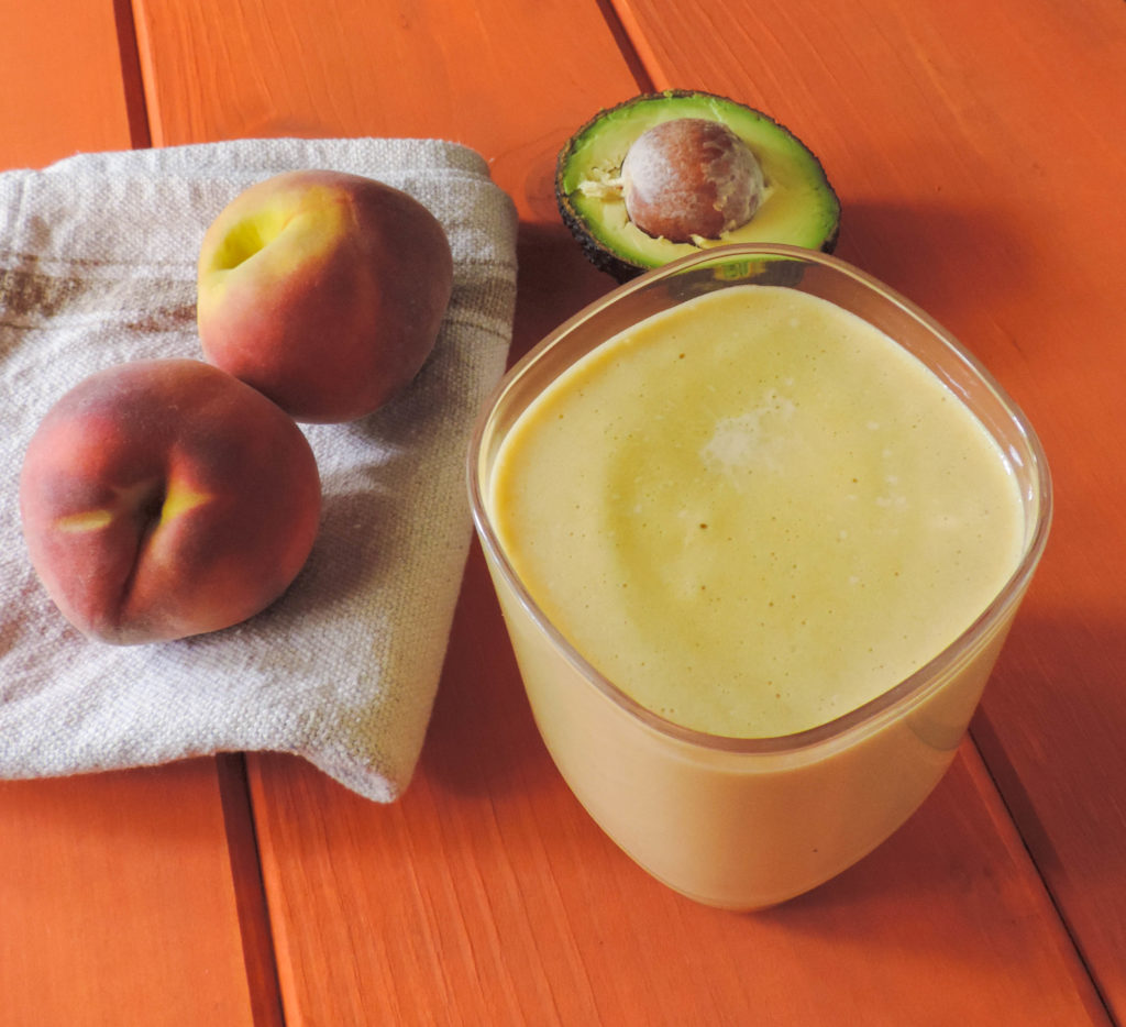 Pour all ingredients in blender. Blend on high for 60-90 seconds or until smooth. Toss in an ice cube or two if you desire a more chilled smoothie (keep in mind this will dilute the flavor and overall texture). For a chilled, undiluted smoothie, try chopping up your peach the night before and freezing it (or just use frozen peaches, they’re great!).