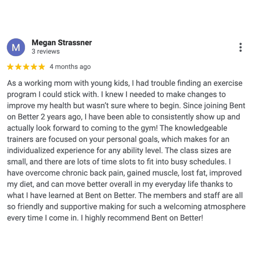 I’ve overcome chronic back pain, gained muscle, and can move better overall in my everyday life thanks to what I’ve learned at Bent on Better.